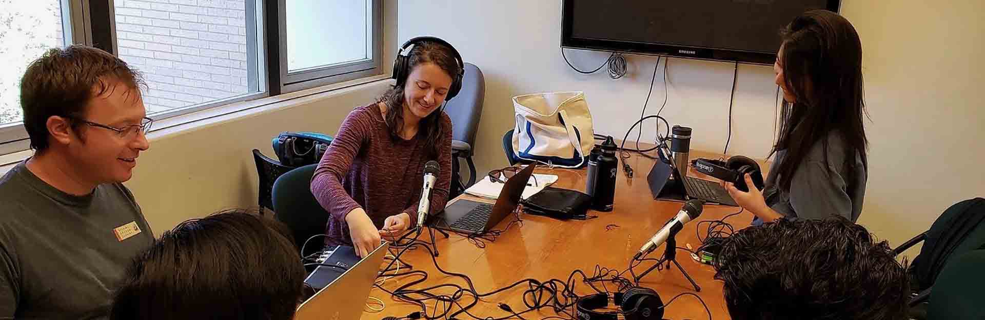 Setting up for a podcast recording